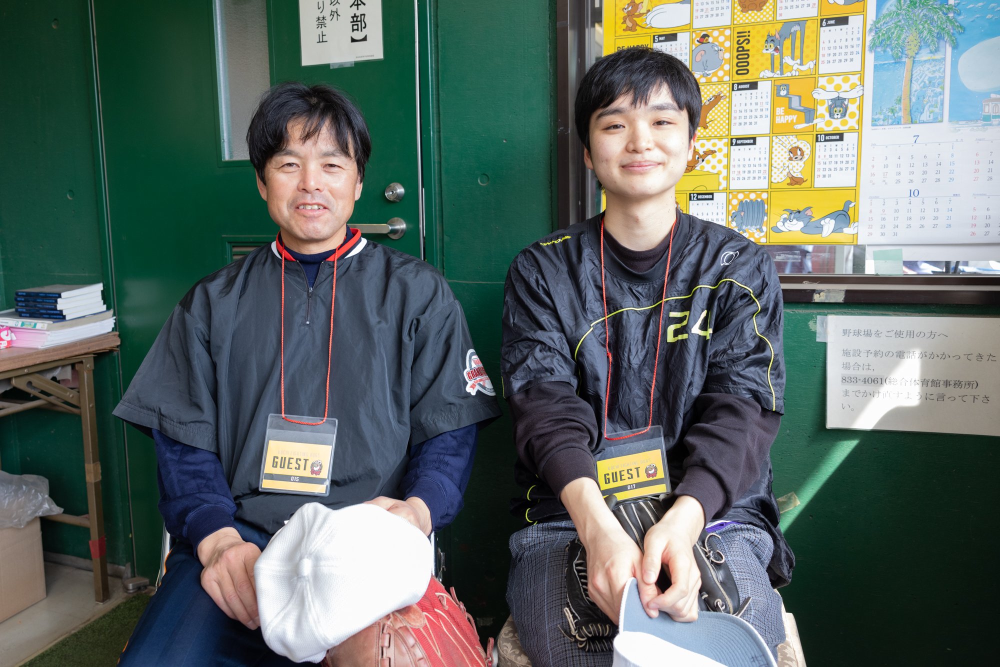 松本父子也好,稻井父子也好,對近距離觀看的選手們說:“果然身材完全不同呢!”情緒高漲。據說稻井先生(兒子)到中學為止都是棒球少年,但是其他人也是第一次使用硬球。