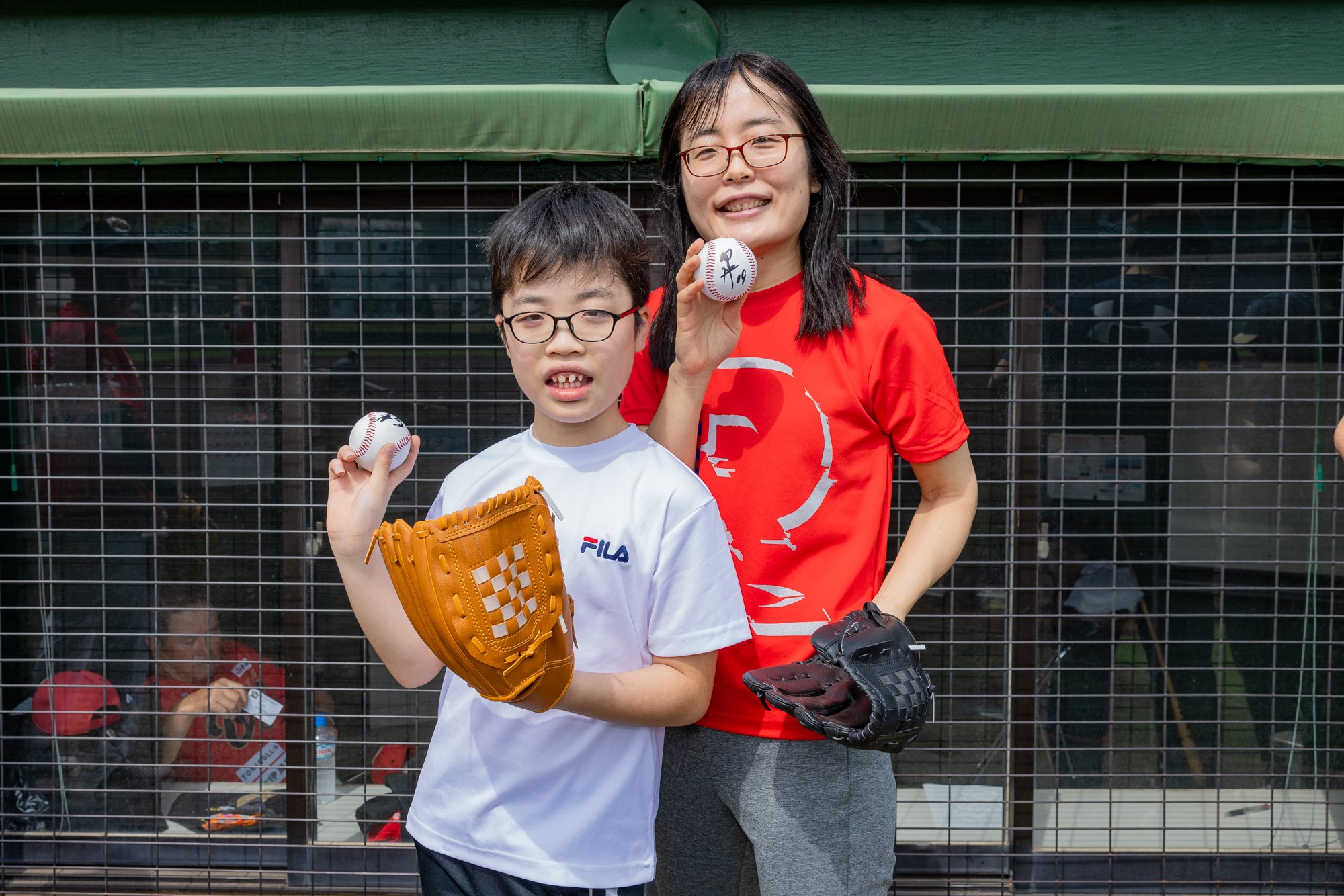 “雖然手很痛,但是很開心,能見到專業選手很開心。我很珍惜簽名球!”。繼兒子之後,媽媽又說道:“一旦自己做,就會這麼難......。在投接球上把球飛到了各種各樣的地方,不愧是專業人士。拋到哪裡都給了我。今天真的非常感謝大家”