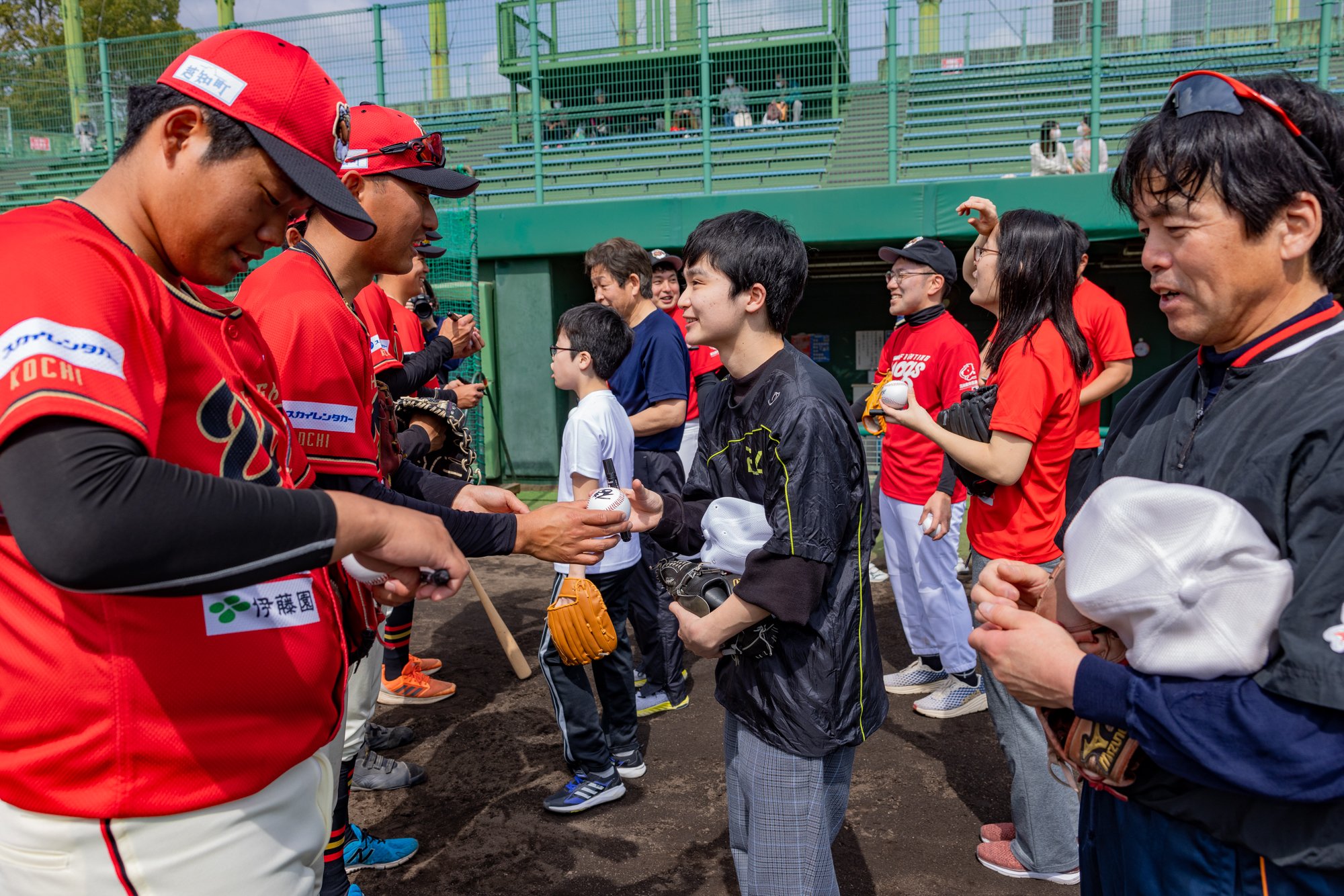 2023年3月12日高知市球場,天氣暖洋洋。在WBC·武士日本的活躍使棒球熱高漲的情況下,“體育運動!高知”主辦的體驗企劃“和職業棒球選手一起體驗棒球!”舉辦了。體驗了與活躍在四國島聯盟plus的教練和選手們的擊球&敲門、投接球、比賽“土佐的魔芋2023官方活動·普羅亞馬對抗戰/高知Fighting Dogs vs四國銀行”的觀戰等豐富的企劃。