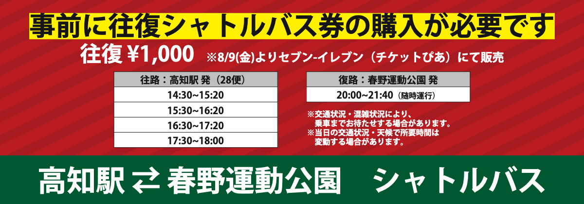 從高知站(收費運行)和高知賽馬場(免費運行)開始運行接送巴士。