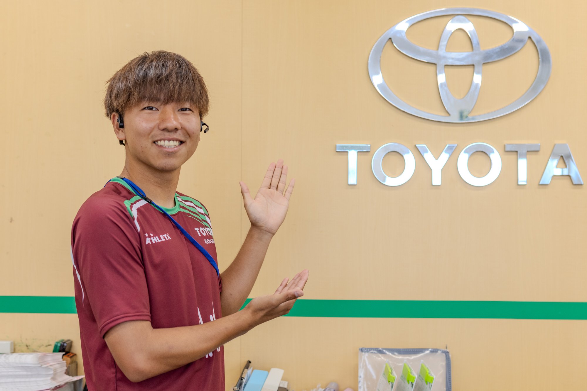 在周圍人的支持下,原田選手向足球邁進。他工作的是豐田租車高知機場店。負責返程應對、移動出發車的車輛移動等工作。