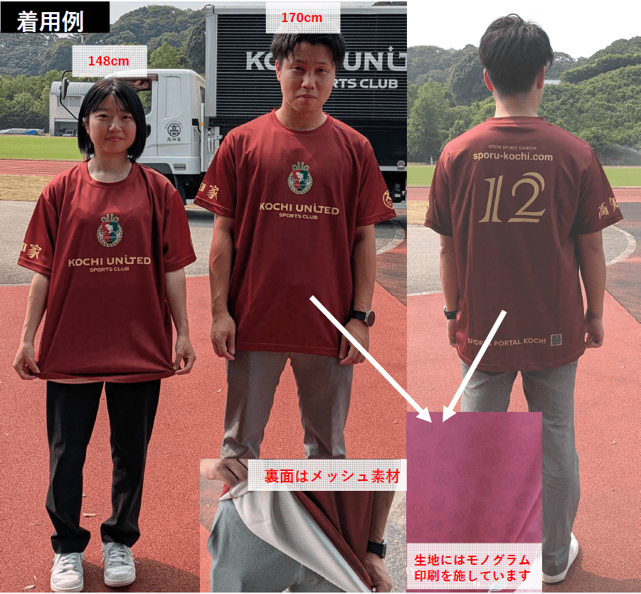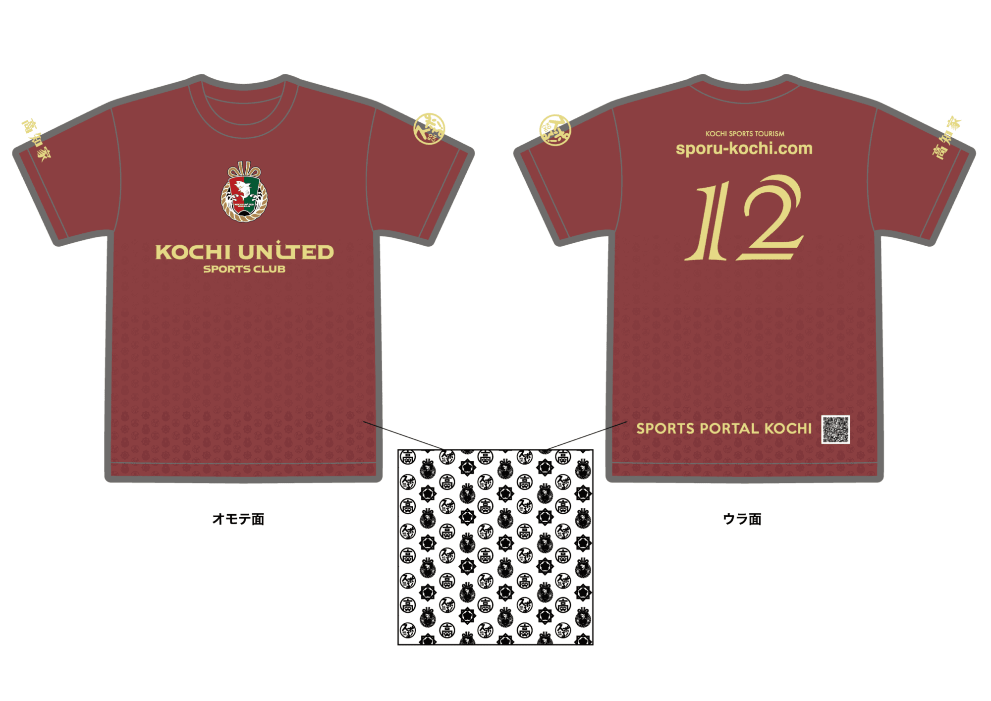 以俱樂部顏色的豔麗色為基礎,俱樂部徽章·“高知家”logo·“sporu!高知”使用了標誌性制服上也顯示的坂本家家紋的原創單克圖案,用漸變配置在前面和背面下部。背面設計了12號支持者。