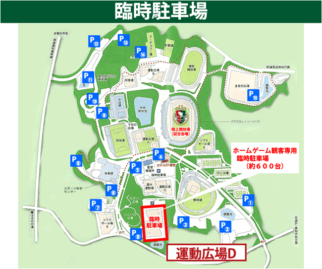 春野運動公園內設置了觀戰客人專用臨時停車場(約600台)。
