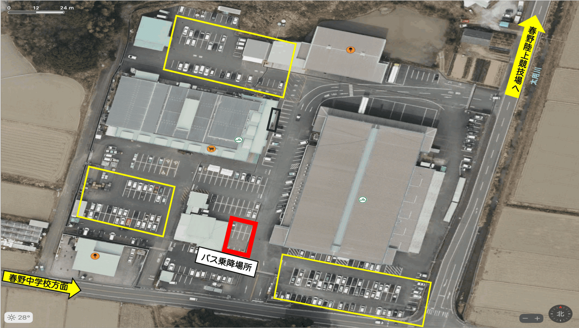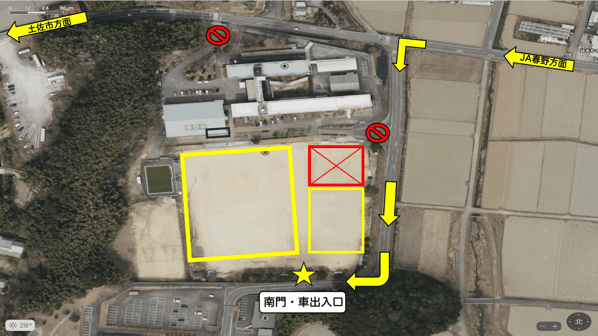 ②臨時停車場(JA高知縣春野支所)⇔體育場(※免費)