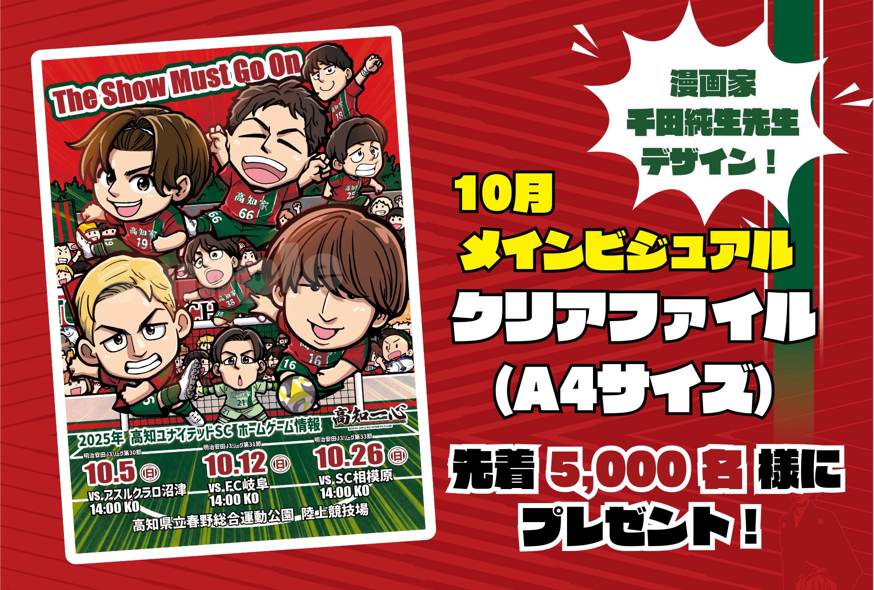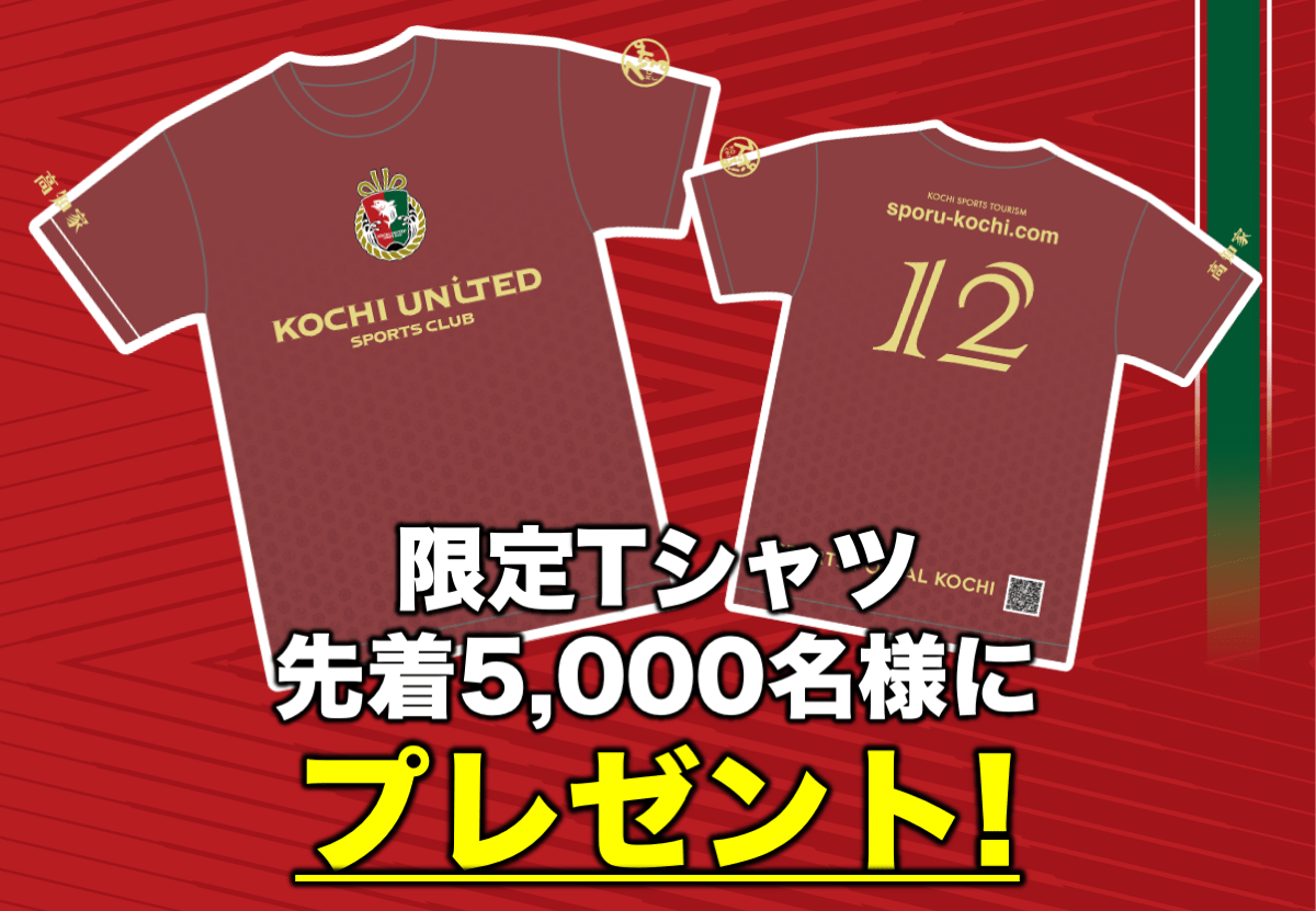 對到場的各位,限定先到的5000名“加油!高知”×高知聯合SC的特別設計T恤作為禮物!穿上原創T恤,將體育場染成豔麗的脂肪,讓高知縣冠比賽氣氛高漲起來吧!