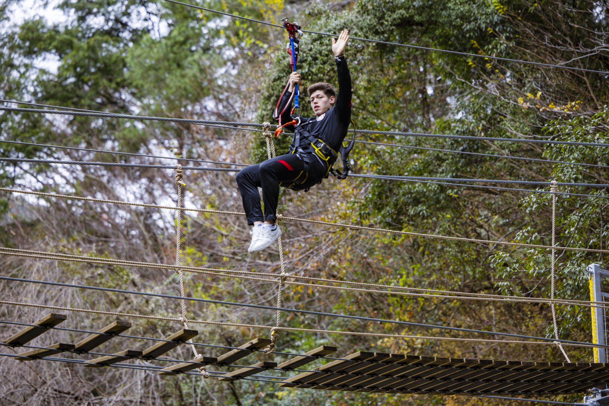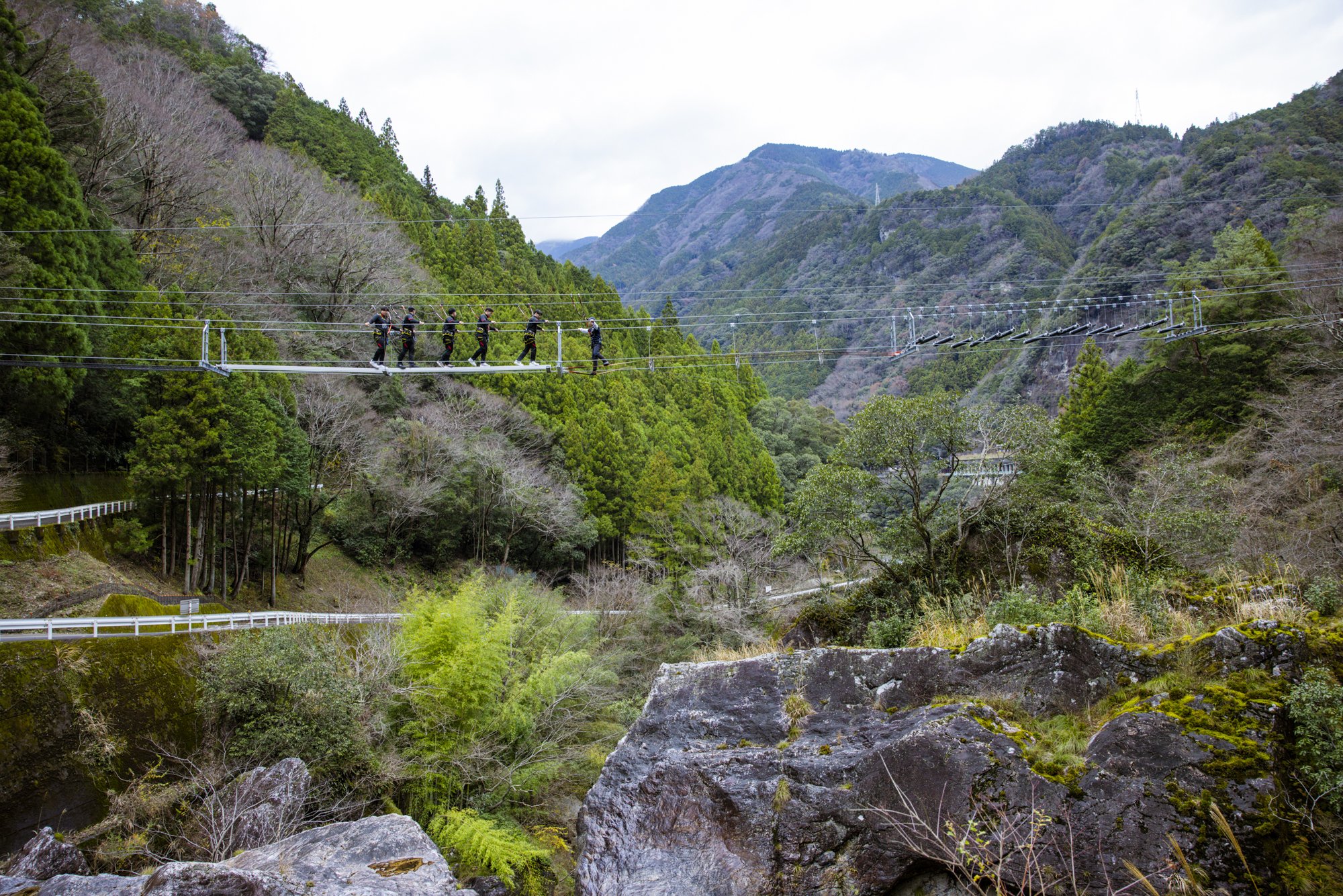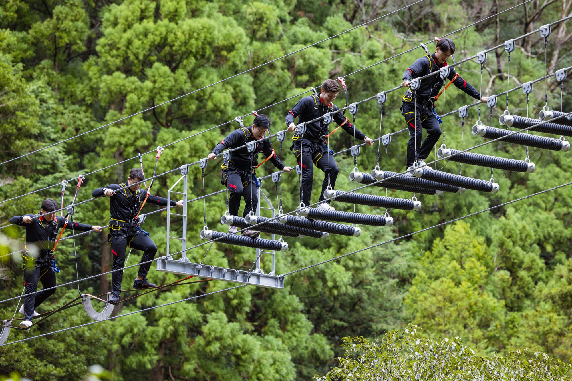 吊橋可以從平時看不到的高處欣賞溪谷景色。但樂趣並不僅僅是這些。其實吊橋的腳手架每隔10米變化一次。首先是圓木,然後是角材,然後是繩子。當然,因為有線束所以很安全,但是在不斷變化的腳手架上,忐忑不安!高30米,驚險滿分的空中散步。