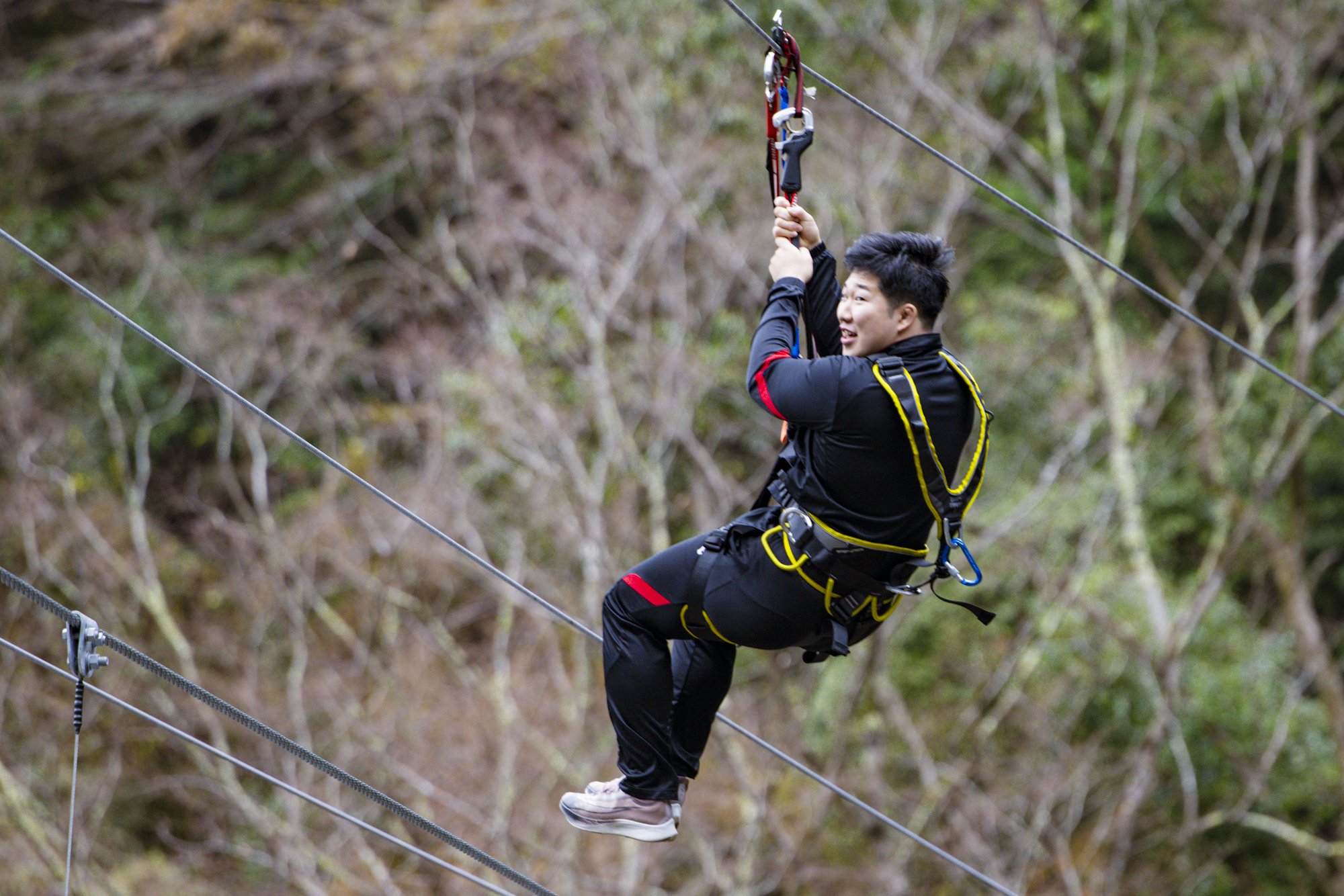 齊本選手:“能感受到大自然,恢復精神。雖然平時很少有機會去玩,但是像這樣在河裡玩,體驗了拉鏈,體驗了非常新鮮的體驗。拉鏈非常有趣”。