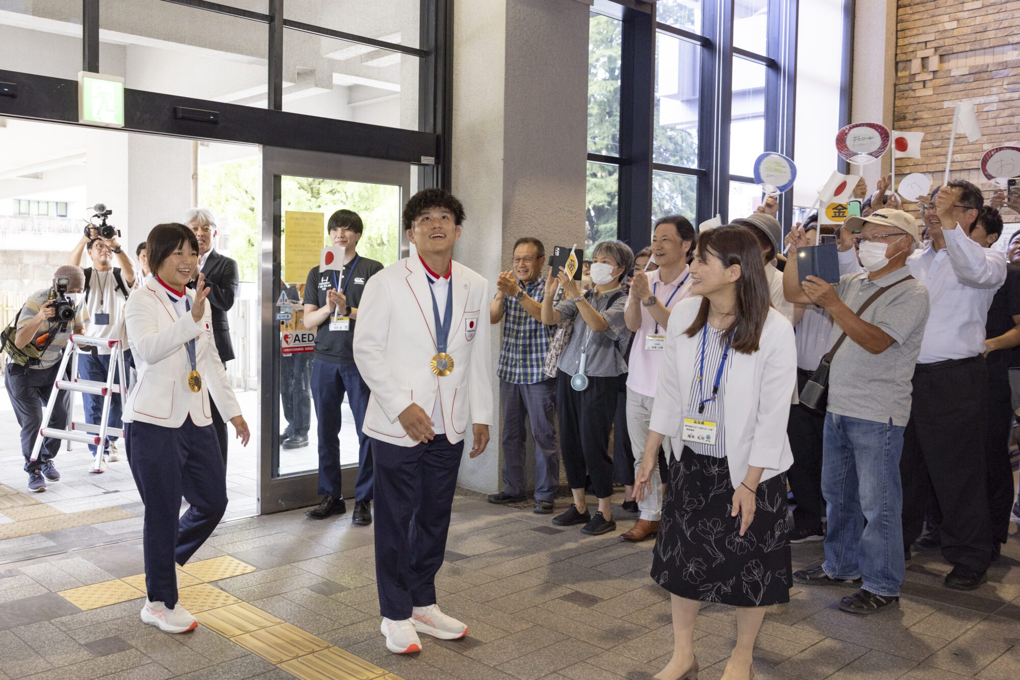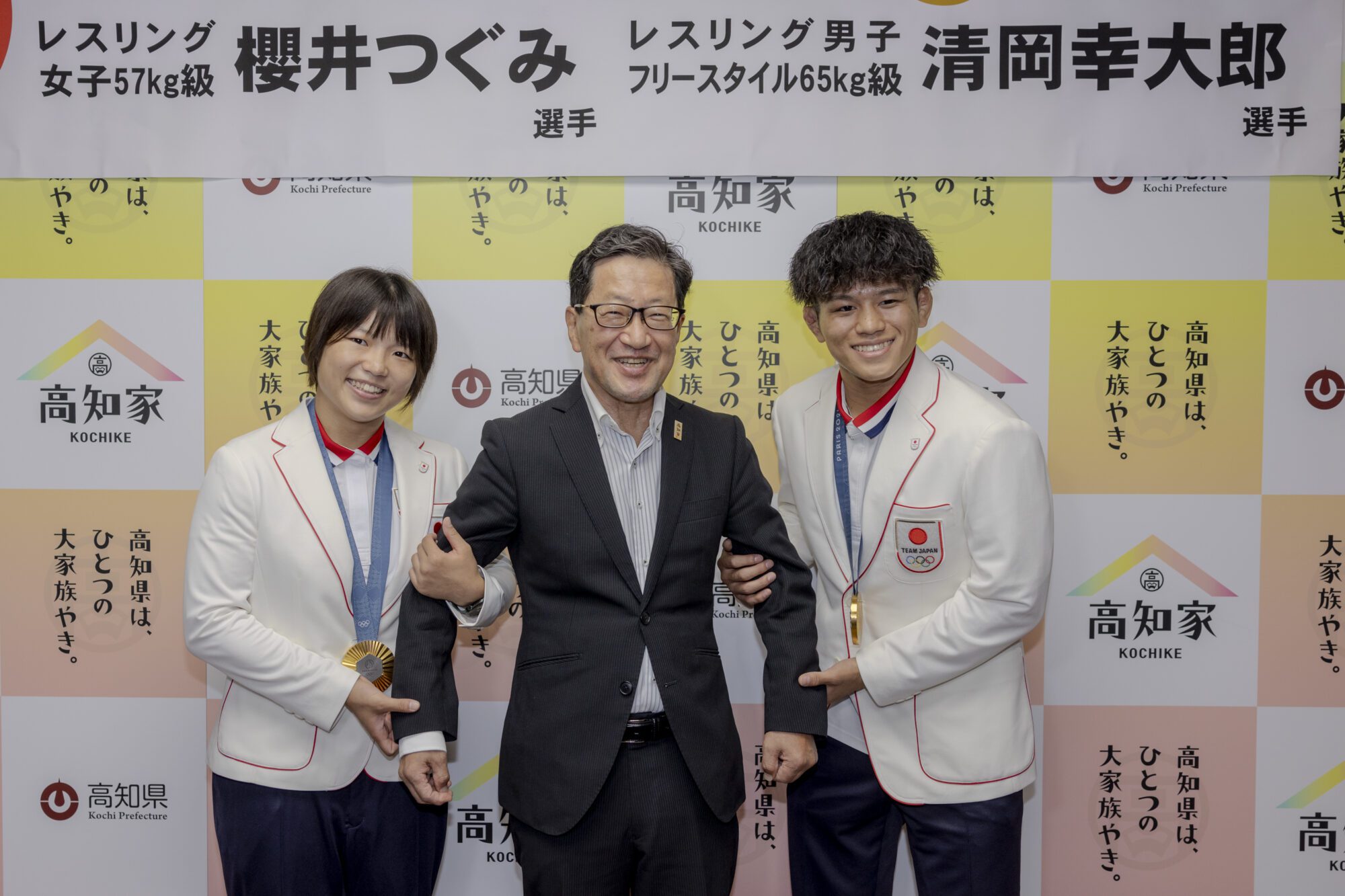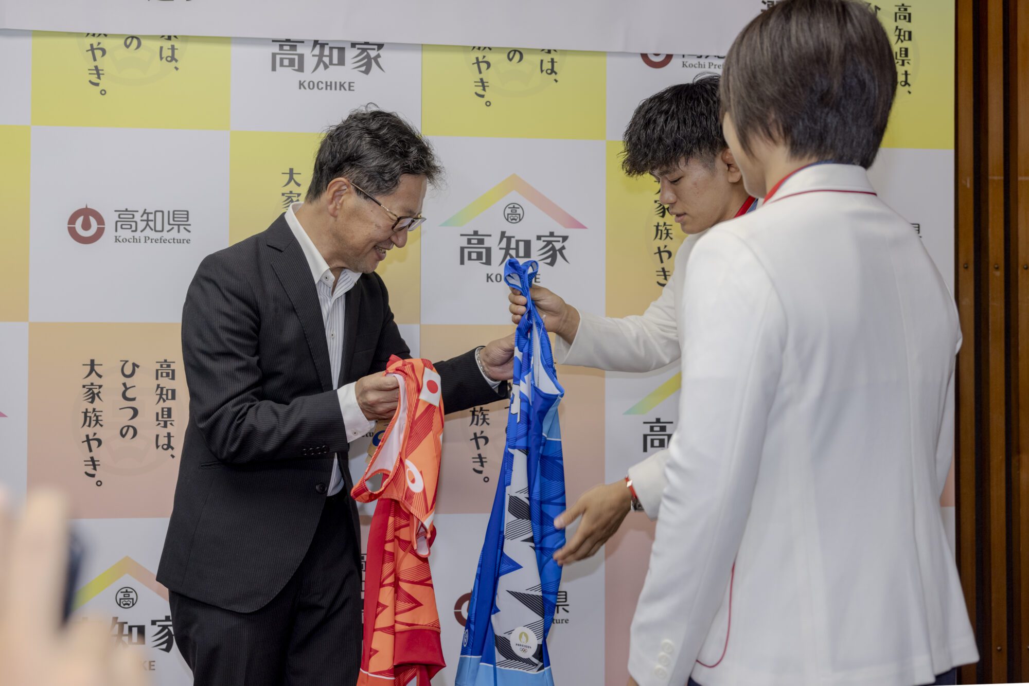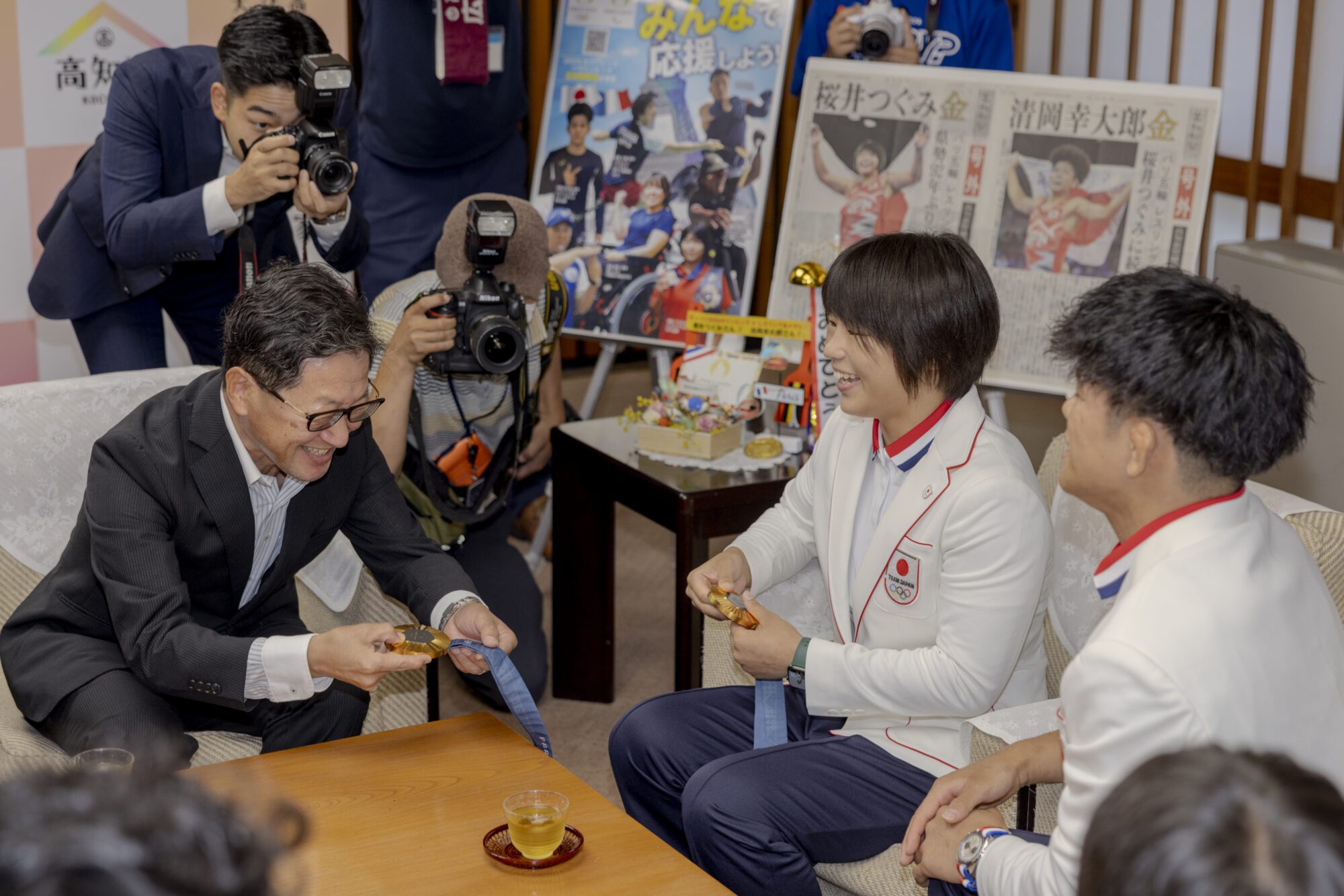 2024年8月22日,櫻井惠選手和清岡幸大郎選手拜訪了高知縣廳,眾多高知縣政府職員和記者前來迎接,為兩位選手的偉大事業祝福。