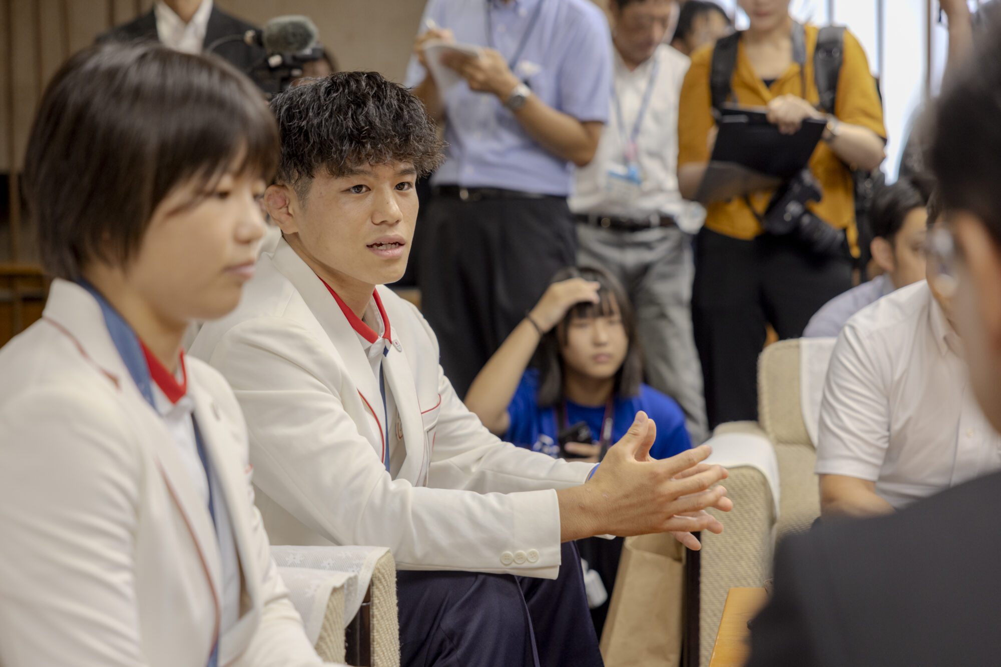 櫻井選手和清岡選手報告了在巴黎奧運會上獲得金牌的消息,表達了對至今為止給予我們熱烈應援的高知縣民的感謝。櫻井選手說,“高知發生了地震,在非常嚴重的情況下得到了大家的支持,希望自己能拿到金牌變成力量,所以我努力了。感謝大家的支持”,清岡選手也表示“能把兩枚金牌帶回養育自己的高知縣,真是太開心了。我想是不是能讓孩子們從高知縣向世界展翅高飛,讓他們看到這樣的夢想”。