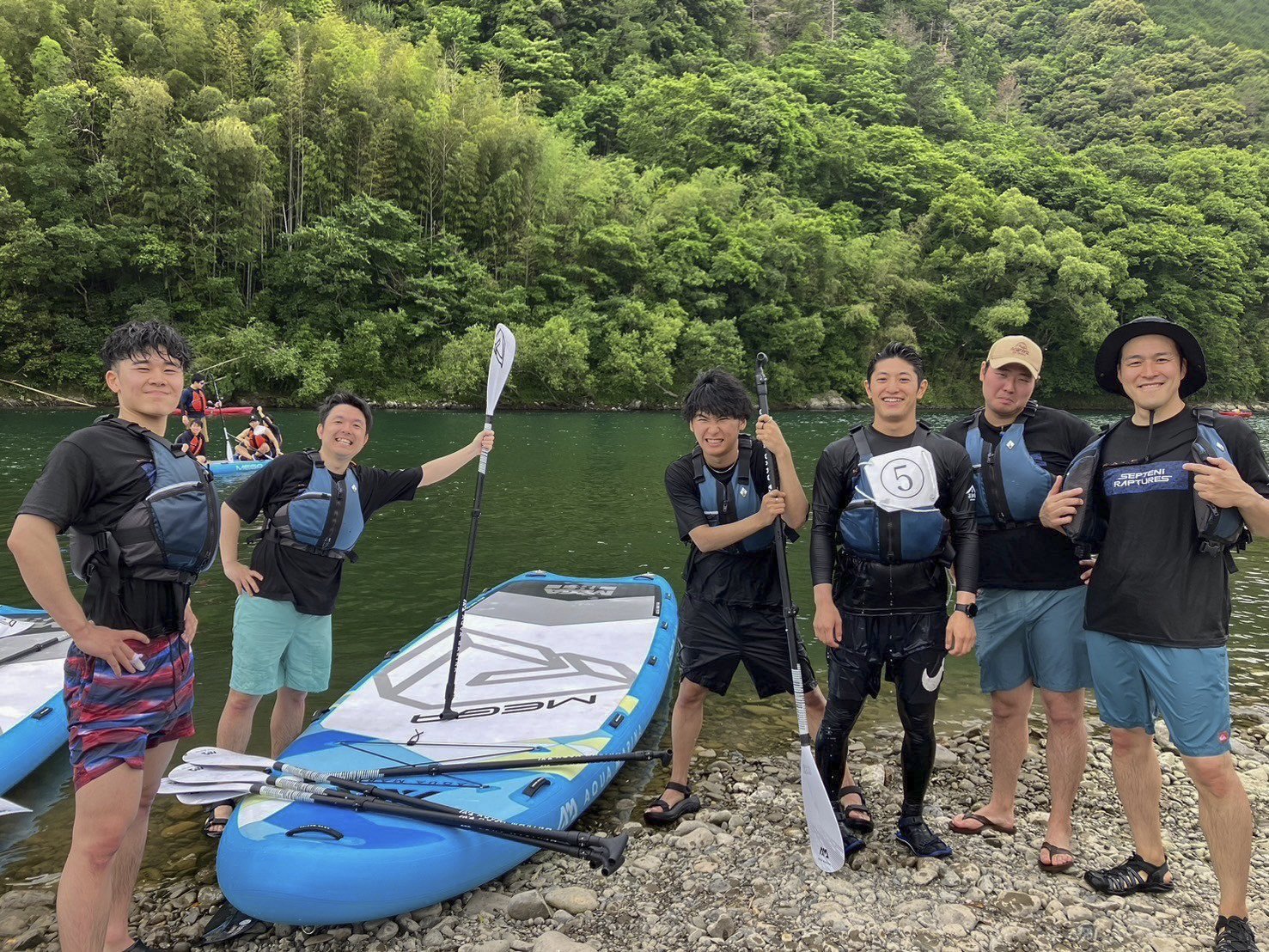 在清流四萬十川岸邊的“四萬十皮艇和露營之鄉”首次舉辦!!!第一屆超級杯賽!!!發球!團隊挑戰!