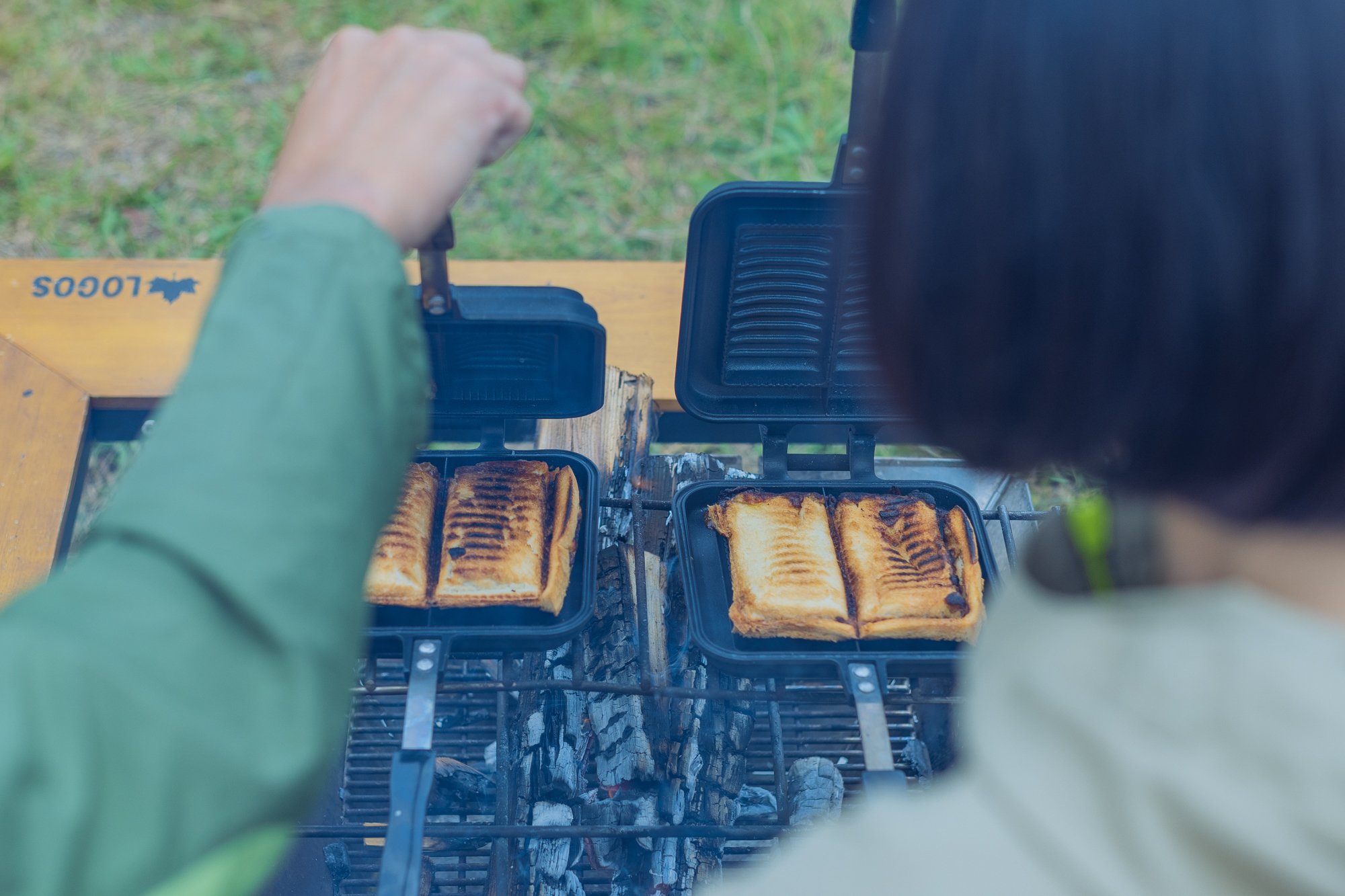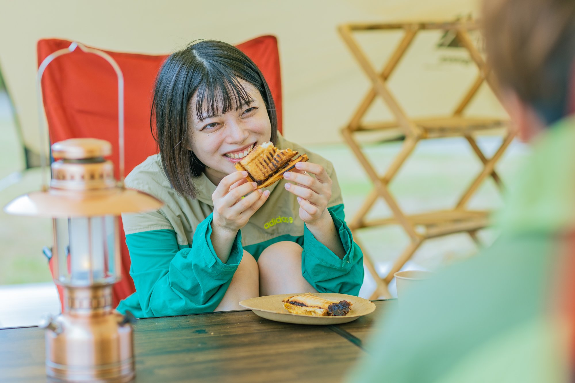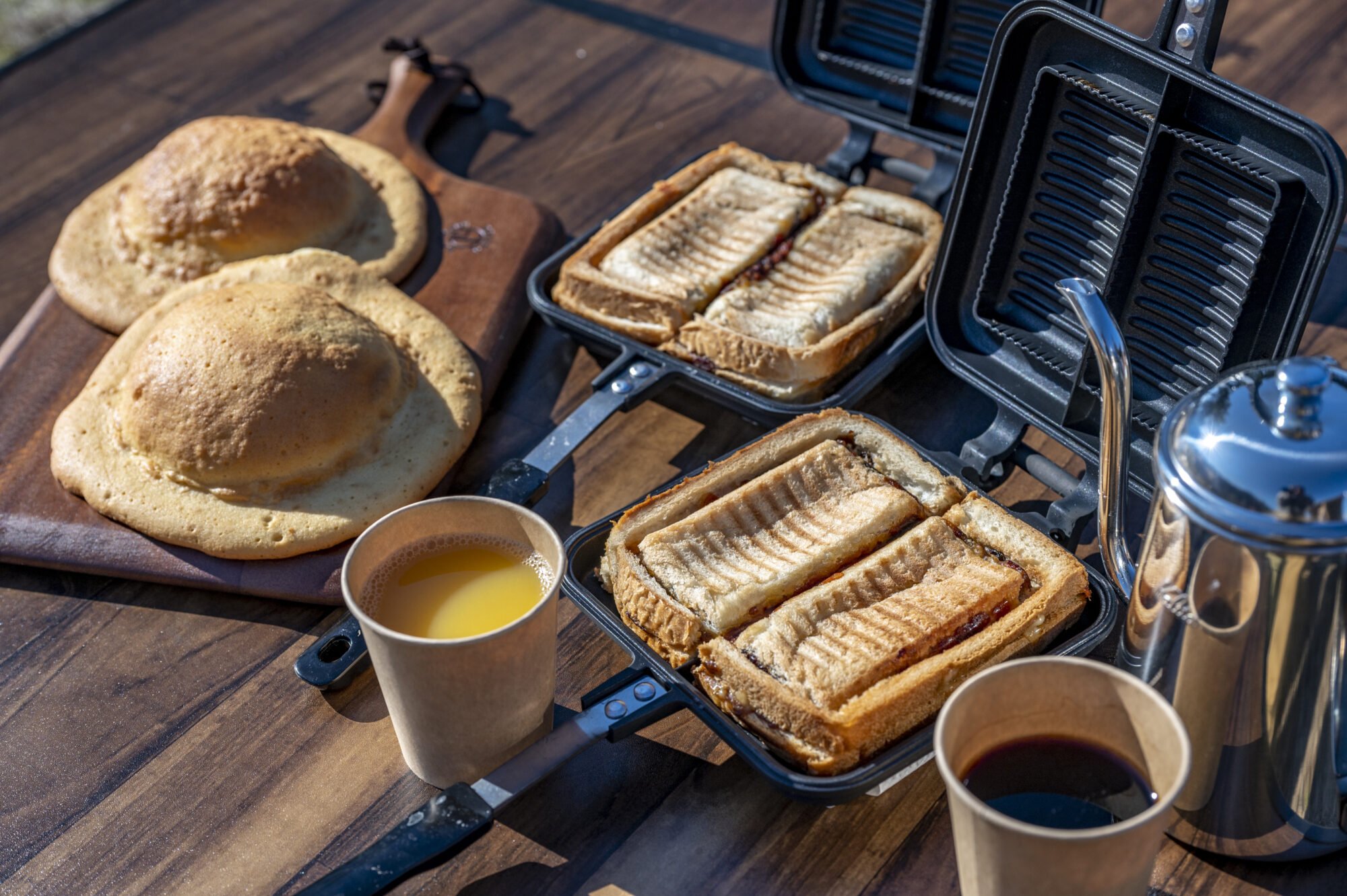 早餐是高知名產的“帽子麵包”和野營的招牌“熱三明治”。