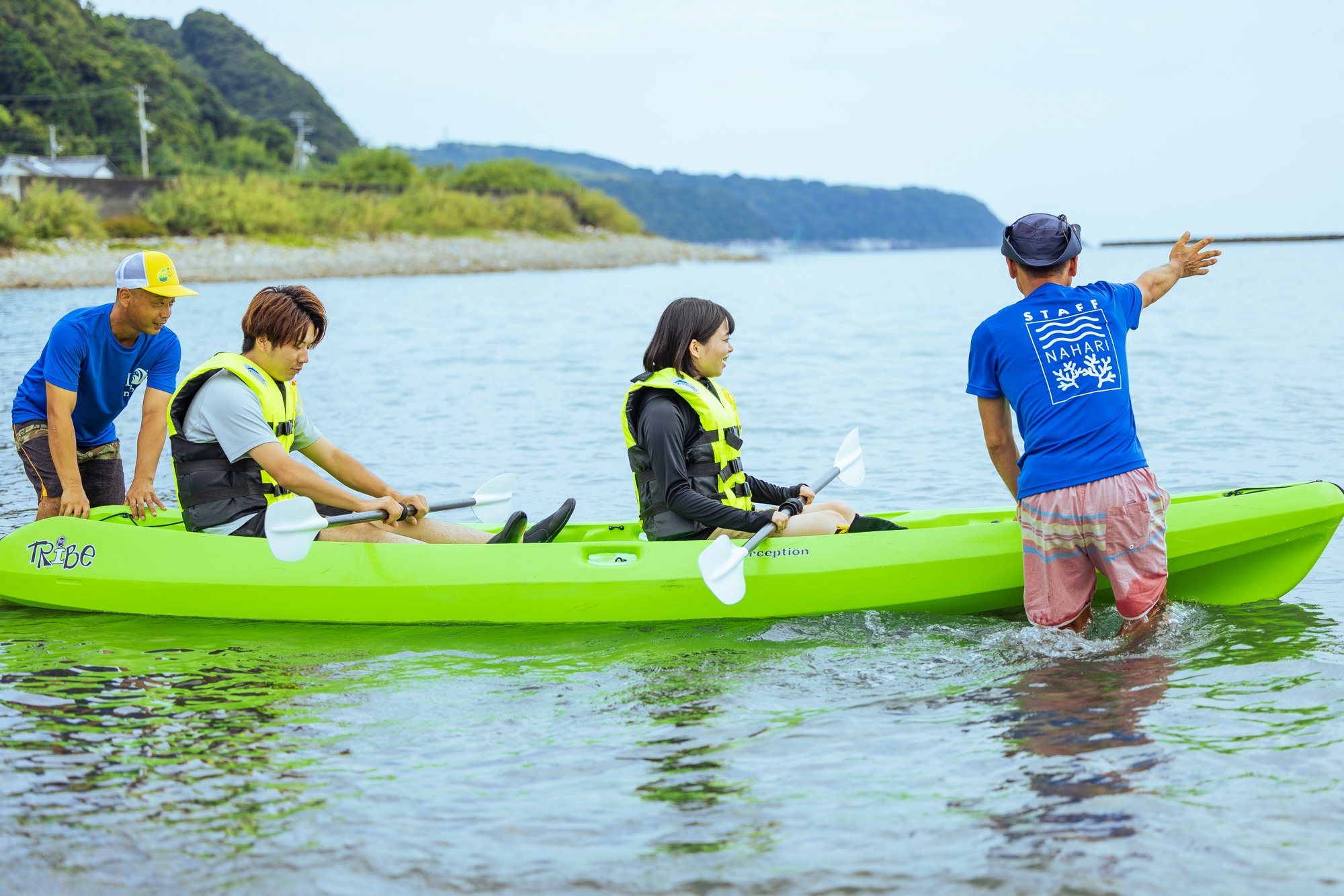 在能遇到約70種珊瑚和五顏六色的熱帶魚的奈半利的海裡,皮艇、SUP、浮潛可以隨便玩。