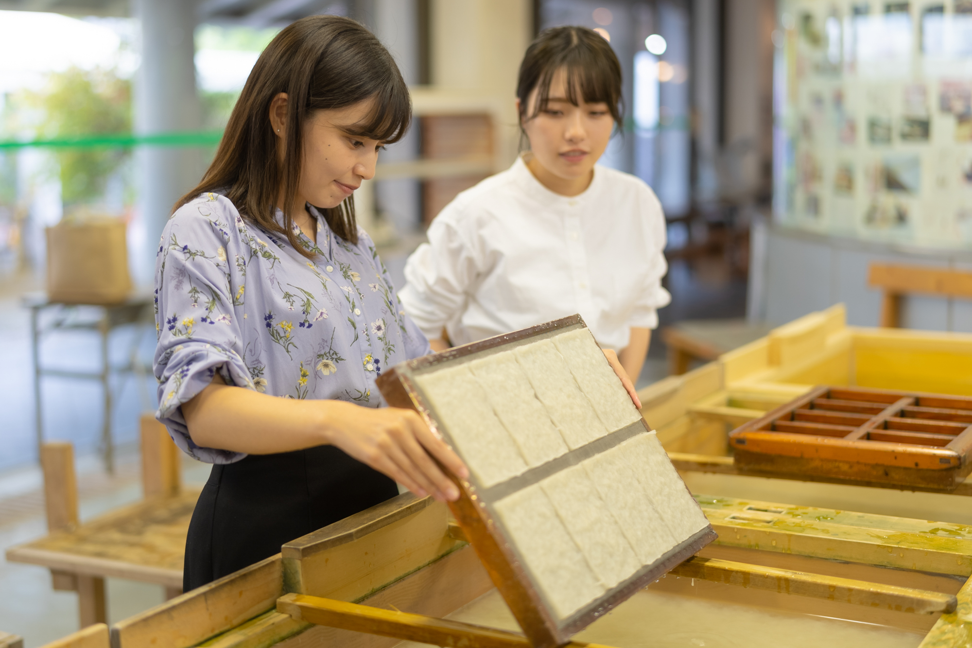 享受了皮艇體驗後回到車站,挑戰土佐和紙的“紙屑”體驗。