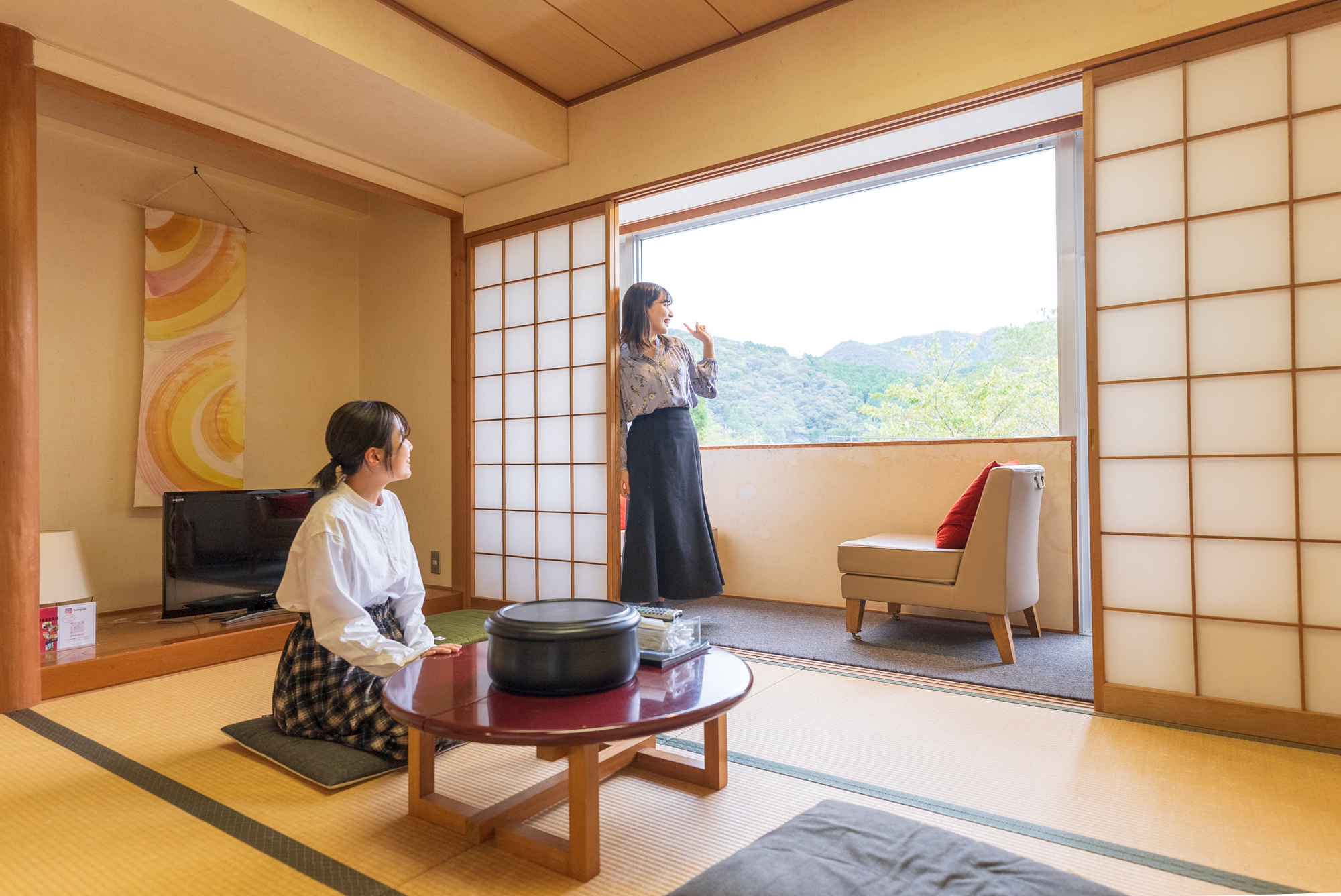 從窗戶眺望的山的綠色和河流的聲音一定能治愈。