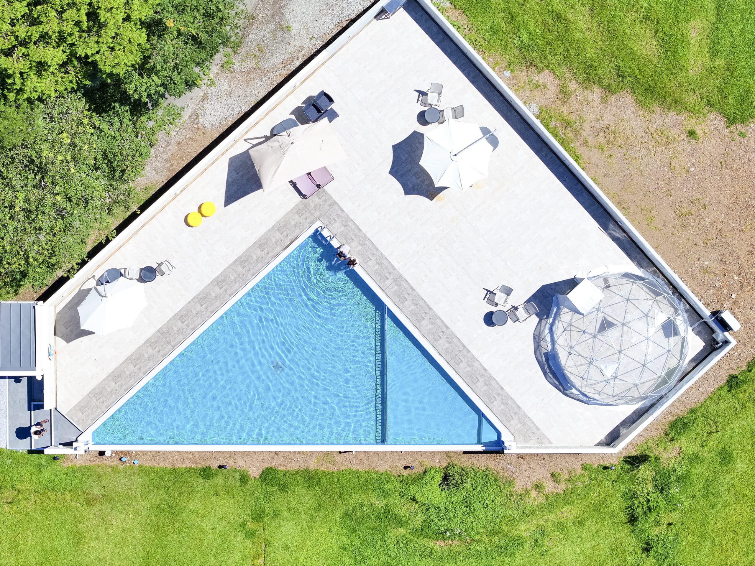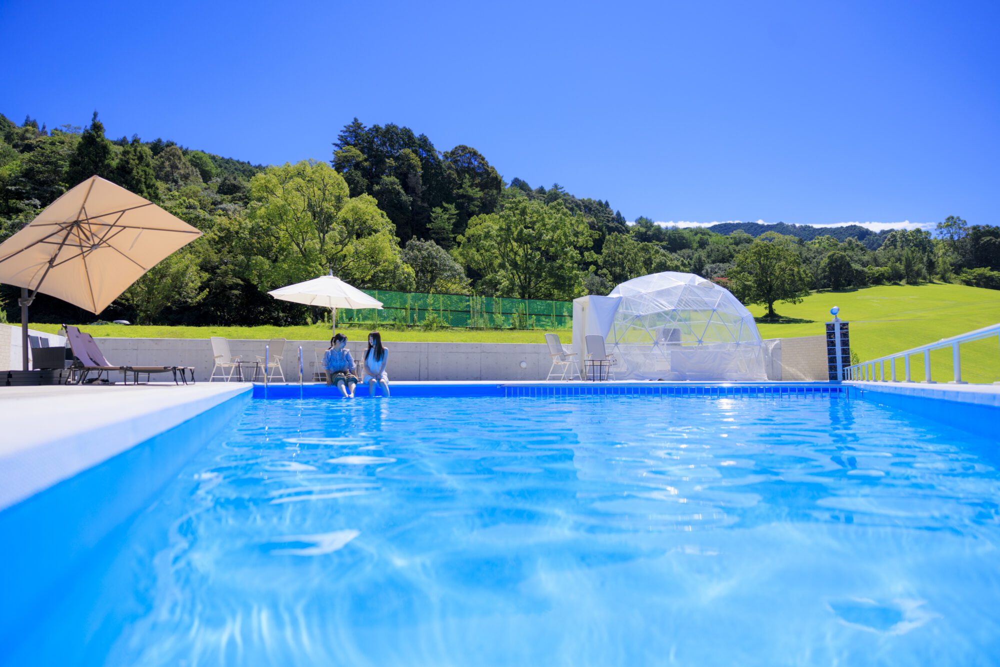 從圓頂步行即可到達,還有共享游泳池。在游泳池邊感受清澈的空氣邊悠閒地度過也不錯,悠閒地漂浮在游泳池裡,眺望沒有遮擋物的天空也不錯。因為可以使用到20點,所以也可以享受仰望星空的夜間游泳池。