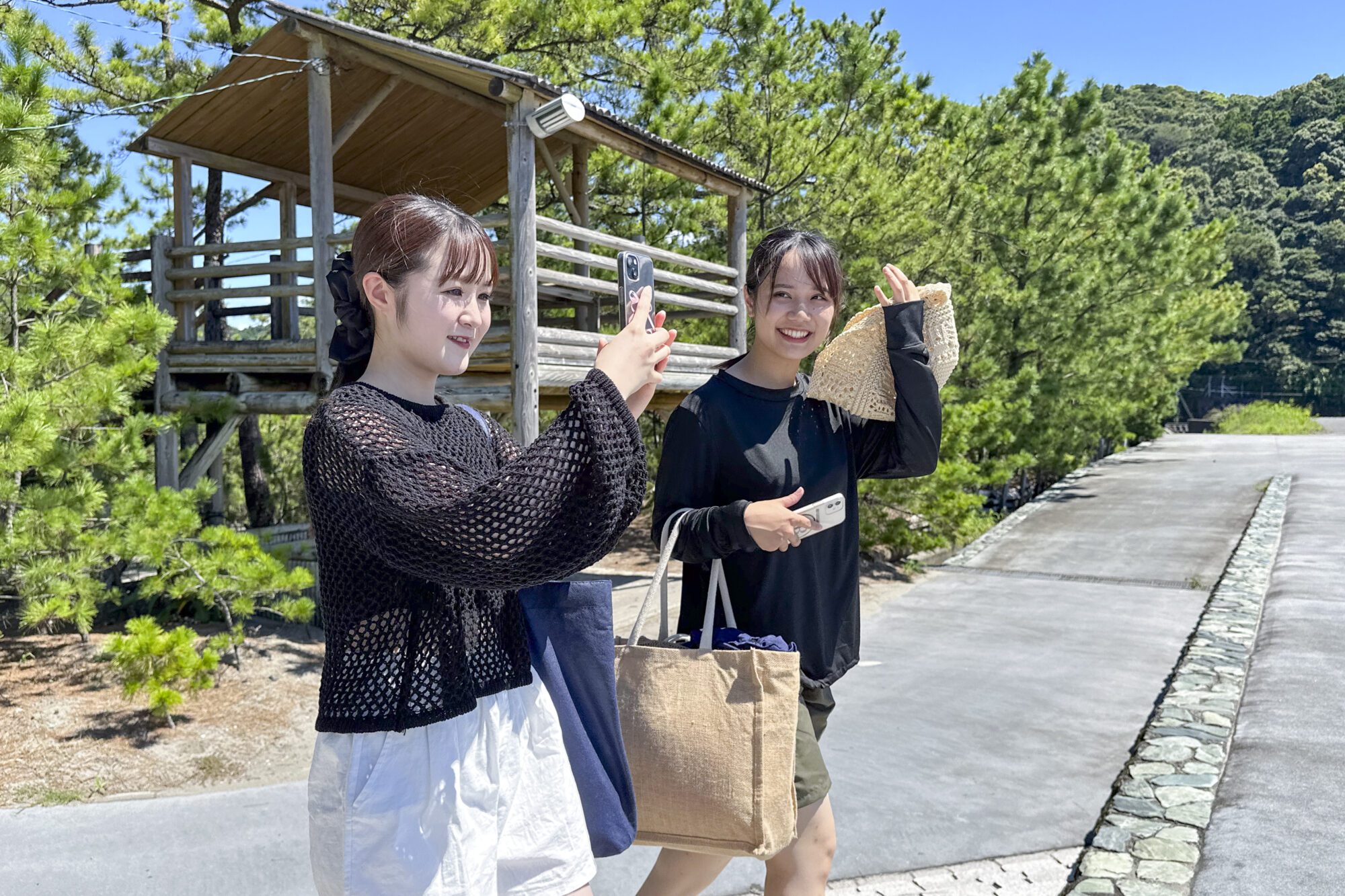 關係好的兩人最先去的是興津縣立自然公園內的興津海水浴場。這裡是2001年在環境省“日本88選水浴場”中高知縣唯一選定的海水浴場。從優秀的景觀和水質來看,2006年被選為“快水浴場100選”。