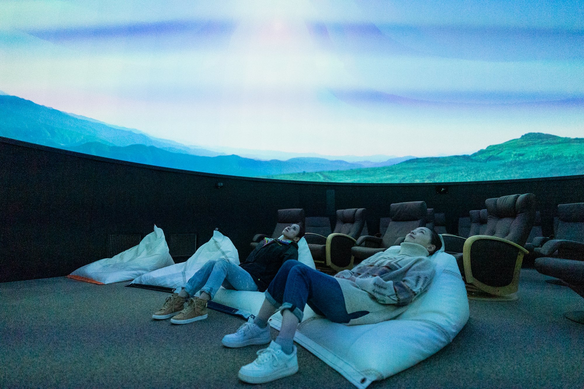 全天周數字投影系統“巴查裡姆X”可以使用高精細的視頻投影機在全天天投影星空和影像,還有蟲聲和河流潺潺細流等天狗高原的“聲音”也很重要的音響,是一個既安靜又充滿臨場感的空間。