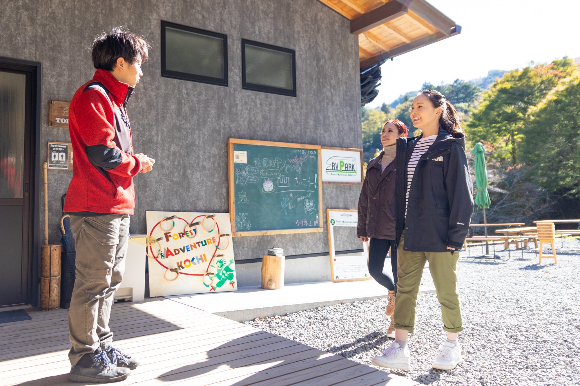 從“星之村TENGU”乘車約30分鐘的地方,發祥於法國的自然共生型戶外公園“森林冒險·高知”。不是開發森林,而是以利用森林原樣的地形建造公園為特徵的設施,在最低限度抑制對環境的負荷的同時,製作了充滿魅力的體育運動。
