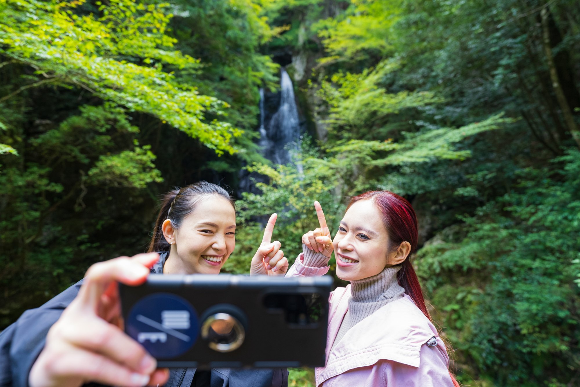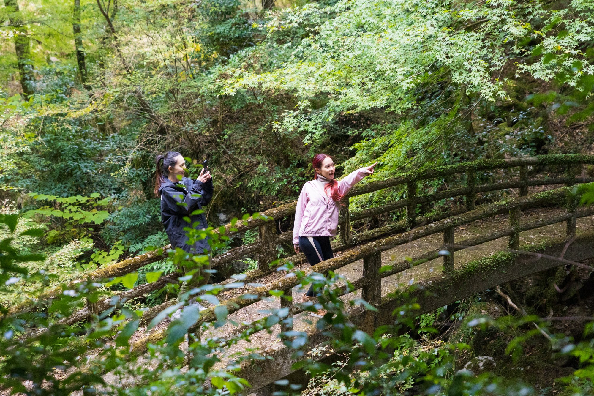 從瀑布前面架設的橋上可以近距離眺望一下子流下來的瀑布,除此之外,離橋稍微遠一點拍攝的話,可以拍出美麗的畫一樣的照片。